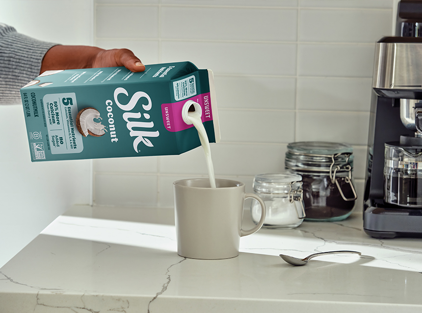 *Silk Unsweet Coconutmilk: 470mg calcium per cup versus 309mg calcium per cup of reduced fat dairy milk. USDA FoodData Central, 2022